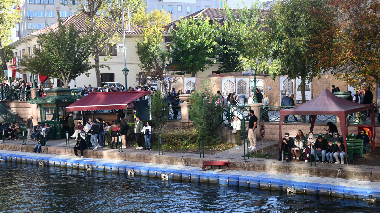 29 Ekim Cumhuriyet Bayramı'nı kapsayan resmi tatili fırsat bilen çok sayıda vatandaş, Türkiye'nin Venedik'i olarak bilinen Eskişehir'e akın etti. Havanın güzel olmasını değerlendiren yerli turistler, kentin simgelerinden biri olan Porsuk Çayı'ndaki gondollara binmek için iskelelerde yoğunluk oluşturdu. Gondol keyfi yapmak için dakikalarca sırada bekleyen ziyaretçiler, Porsuk Çayı üzerinde keyifli anlar yaşarken bol bol hatıra fotoğrafı çektirmeyi de ihmal etmedi.