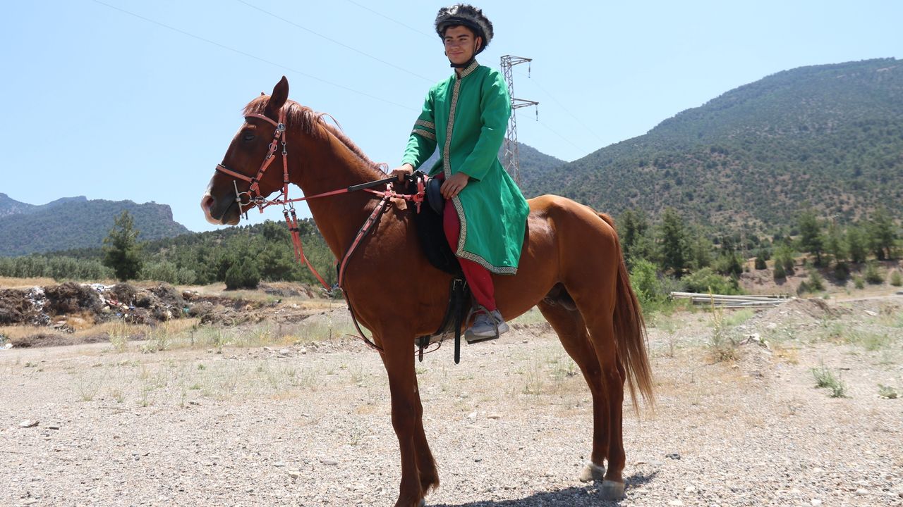 Eskişehir'in Sarıcakaya ilçesinde tarla ve boş toprak arazilere babasıyla kurduğu alanlarda at üzerinde ok atarak uluslararası şampiyonalarda derece elde eden 15 yaşındaki İsmail Mert Yıldırım, 7 yıldır daha iyi dereceler elde etmek için çalışıyor.