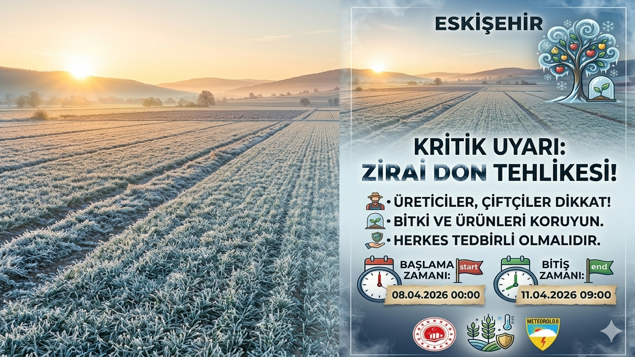 Yapılan son değerlendirmelere göre, Eskişehir genelinde etkisini gösterecek olan zirai don riski 8 Nisan 2026 Çarşamba günü saat 00:00 itibarıyla başlayacak. Yetkililer, sıcaklık düşüşlerine karşı özellikle gece saatlerinde dikkatli olunması gerektiğinin altını çiziyor.