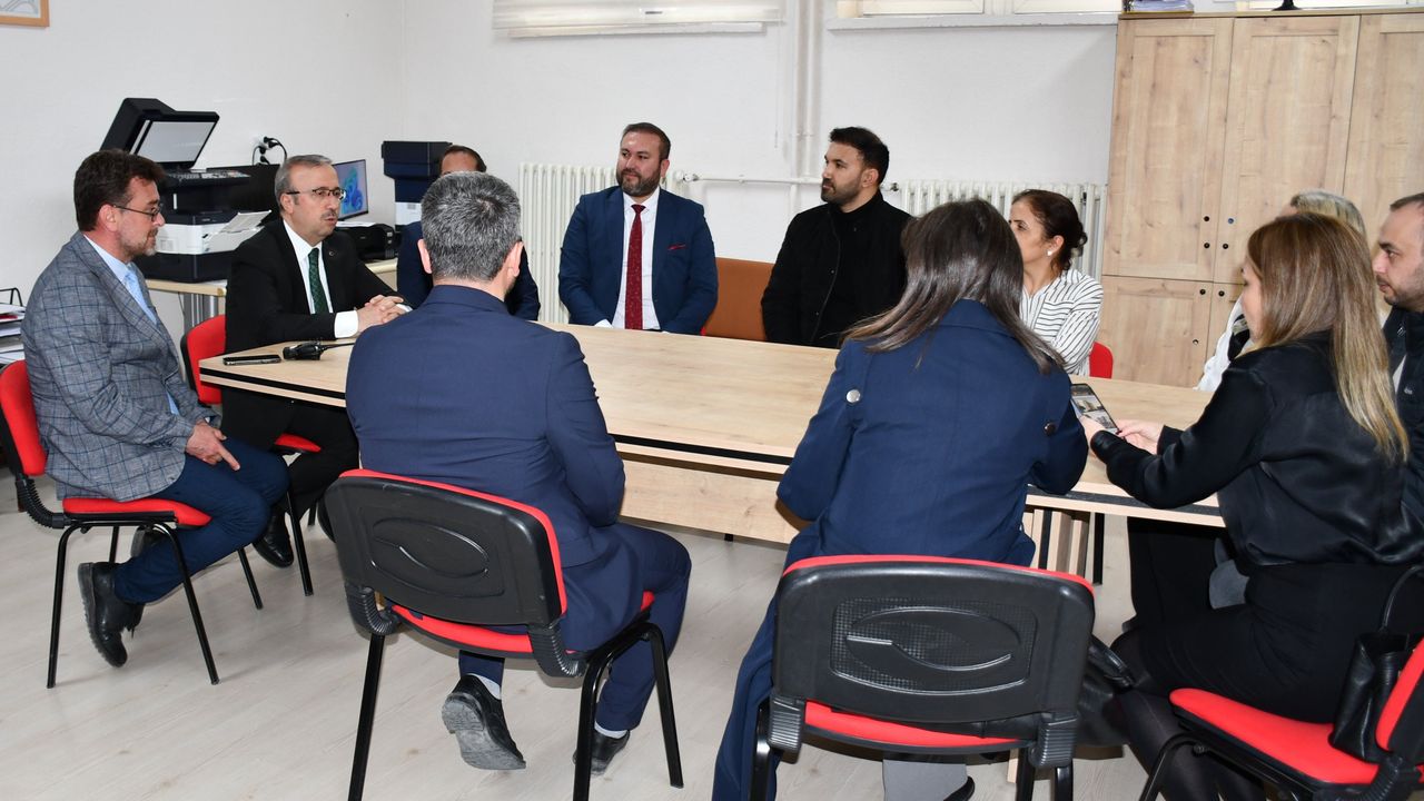 İl Müdürü Sinan Aydın, okulun öğretmenler odasında eğitim kadrosuyla bir değerlendirme toplantısı gerçekleştirdi. Eğitim-öğretim süreçlerinin ele alındığı görüşmede, yapımına başlanan yeni okul binası çalışmaları hakkında fikir alışverişinde bulunuldu. Aydın, inşaat sürecine dair son gelişmeleri paylaşırken, modern eğitim ortamlarının oluşturulması noktasında öğretmenlerin görüşlerinin kritik önem taşıdığını vurguladı.