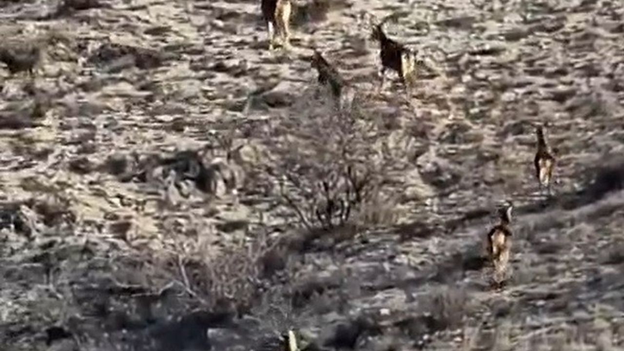 Görüntülerde geyiklerin zaman zaman otladığı, zaman zaman da sürü halinde koşuşturduğu anlar yer aldı. Bir süre bölgede kalan geyikler, daha sonra kırsal alana doğru ilerleyerek gözden kayboldu.