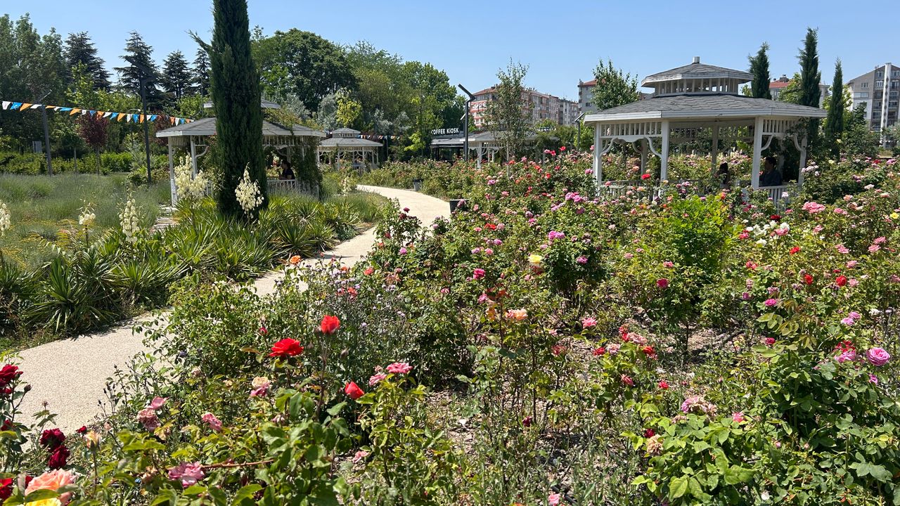 Özellikle çardakların çevresini saran gül ağaçları, gölgede oturan vatandaşları mest etti. Bahçeyi ziyaret edenler hem doğanın hem de çiçeklerin tadını çıkarırken, oluşan manzaralar da fotoğraf tutkunlarının ilgisini çekti.