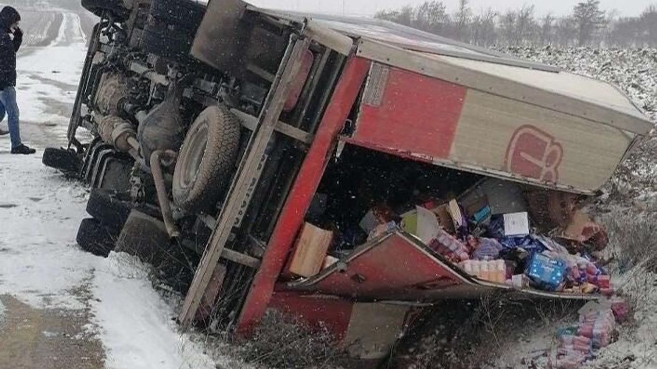 Eskişehir’de sürücüsünün direksiyon hakimiyetini kaybetmesi sonucu devrilen kamyonette 2 kişi yaralandı.