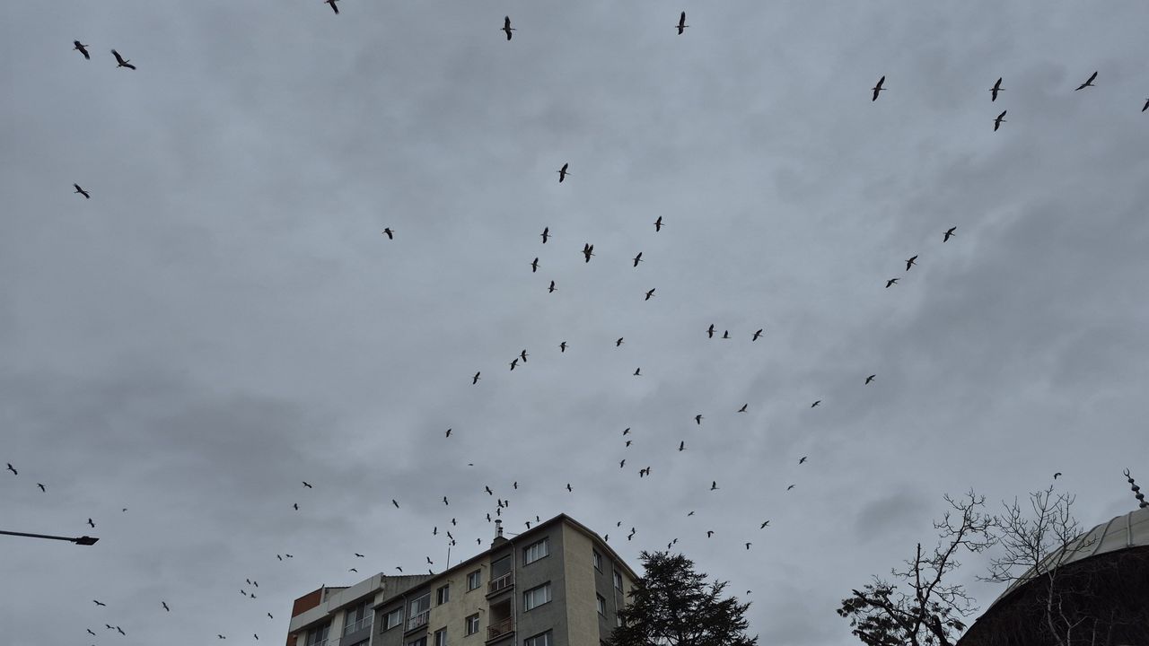 Havaların ısınmasıyla daha sıcak bölgelere doğru yol alan kuşlar, Eskibağlar Mahallesi’nde gözlemlendi.
