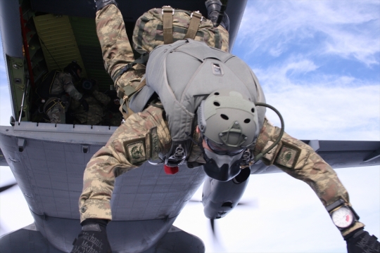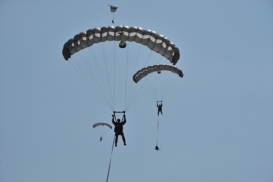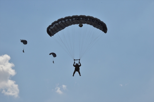 Özel Kuvvetler Komutanlığı personeli, rutin eğitimleri kapsamında Sivrihisar'da paraşüt atlayışları gerçekleştirdi.