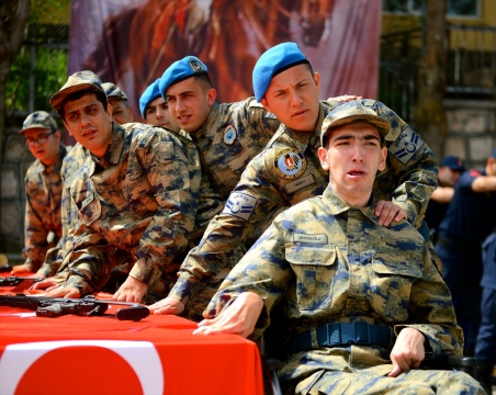 Eskişehir'de üniformalarla törene katılan engelliler, yemin ederek bir günlüğüne asker oldu.