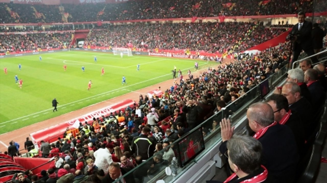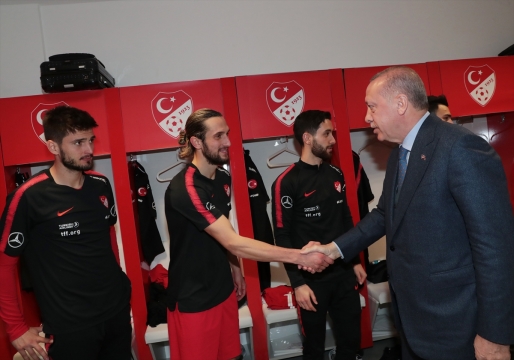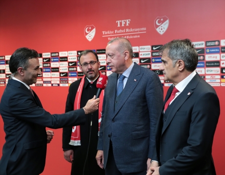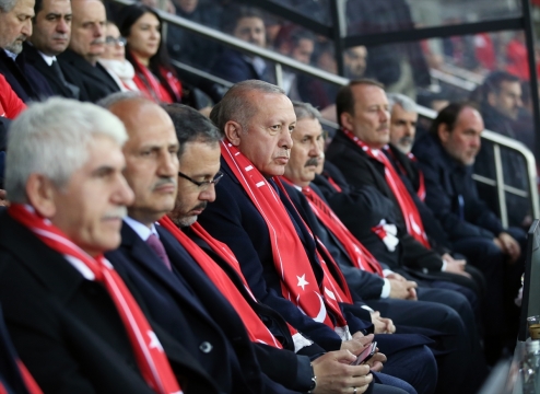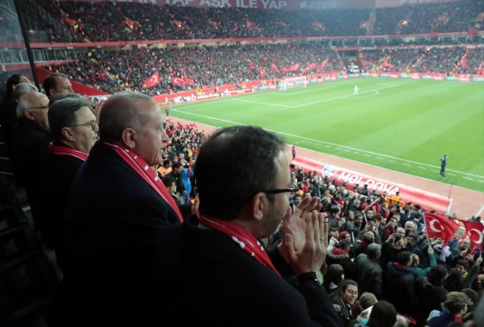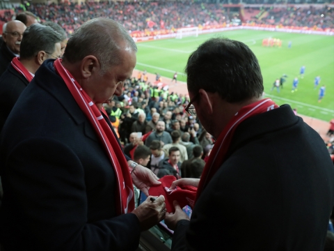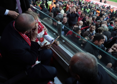 Türkiye Cumhurbaşkanı Recep Tayyip Erdoğan, 2020 UEFA Avrupa Futbol Şampiyonası Elemeleri'ndeki Türkiye - Moldova maçını izlemek üzere Yeni Eskişehir Stadı'na geldi.