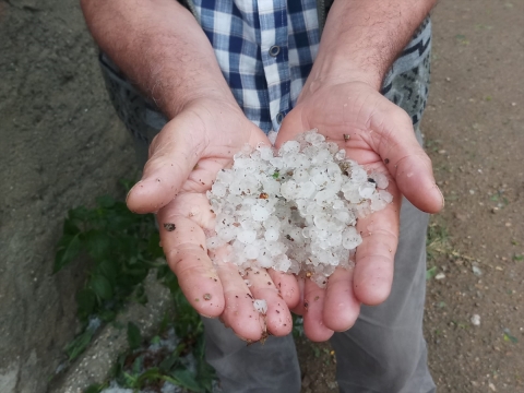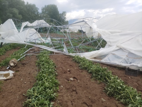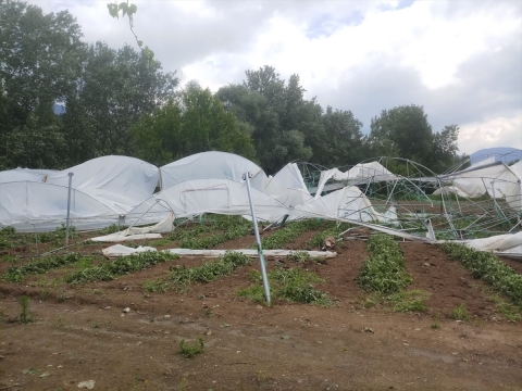 Mihalgazi ilçesinde sağanağın ardından etkili olan dolu ve fırtına özellikle seralarda hasara yol açtı.