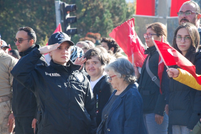 Eskişehir’de de yüzlerce vatandaş 29 Ekim Cumhuriyet Bayramı’nı, düzenlenen törende korteje katılarak bayraklarla kutladı.