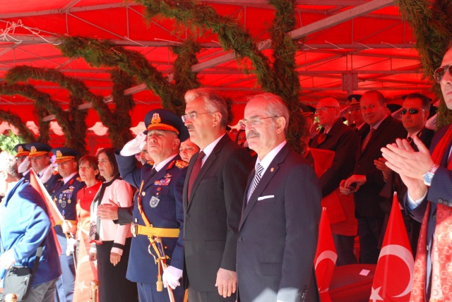 Eskişehir Valisi Erol Ayyıldız, Muharip Hava Kuvveti ve Garnizon Komutanı Orgeneral Ziya Cemal Kadıoğlu askeri araçla korteje katılan vatandaşları selamlayarak Cumhuriyet Bayramı’nı kutlamasıyla başlayan tören saygı duruşu ve İstiklal Marşı ile devam etti.