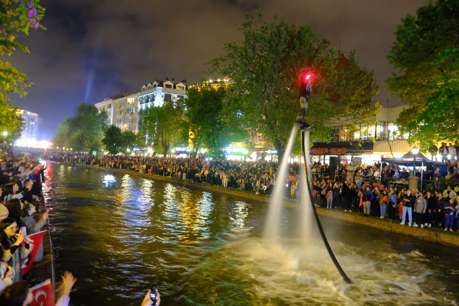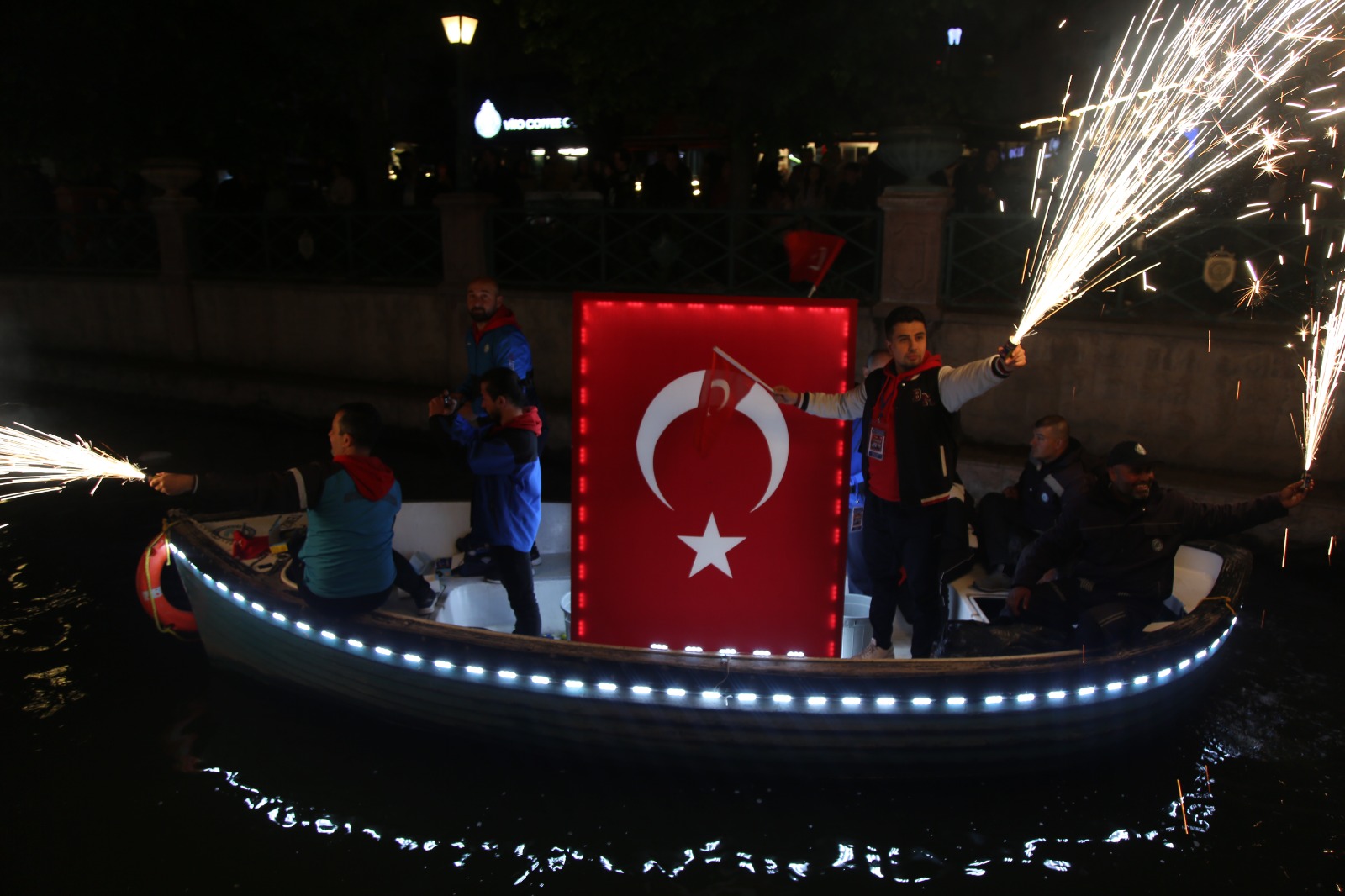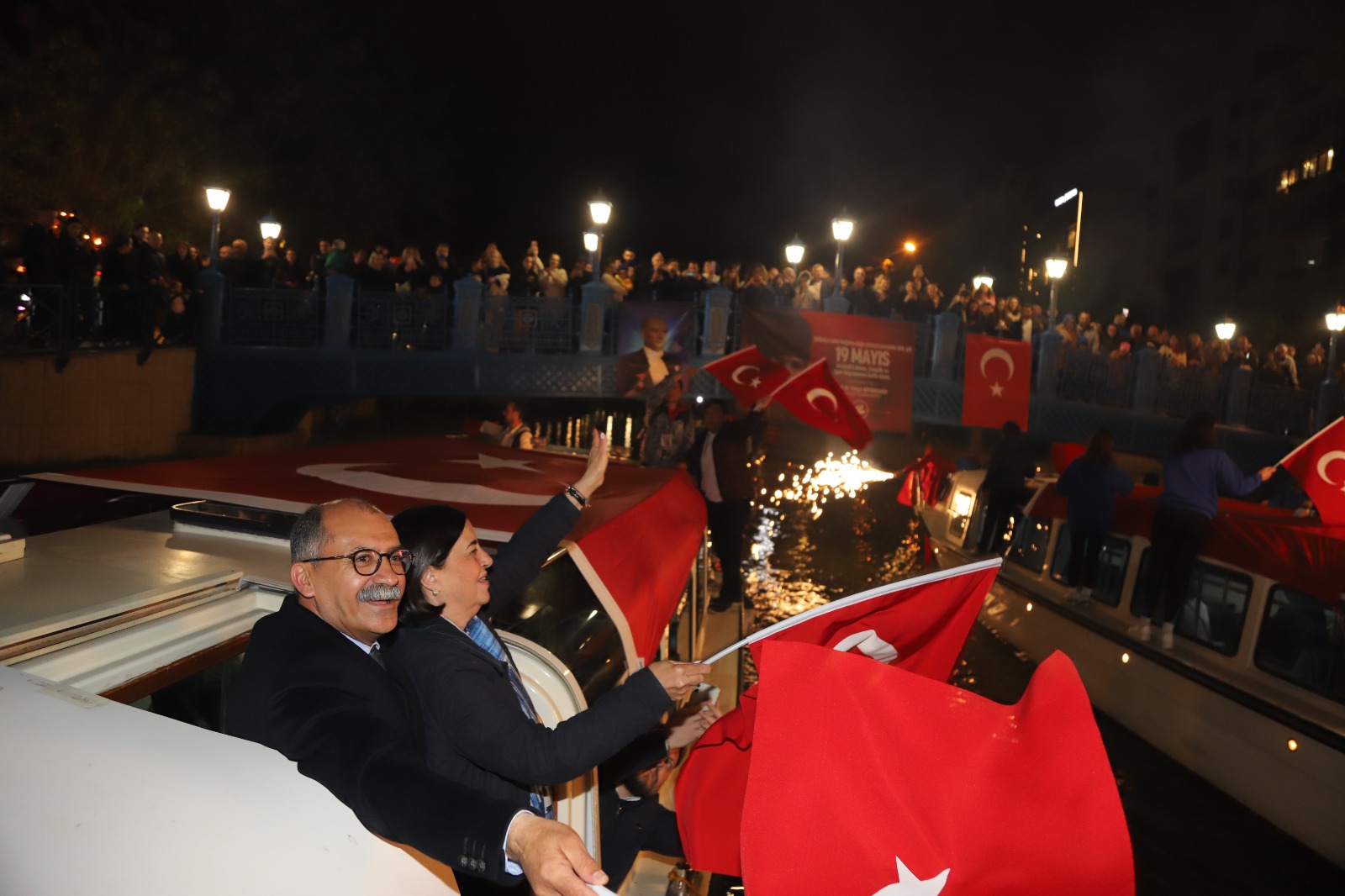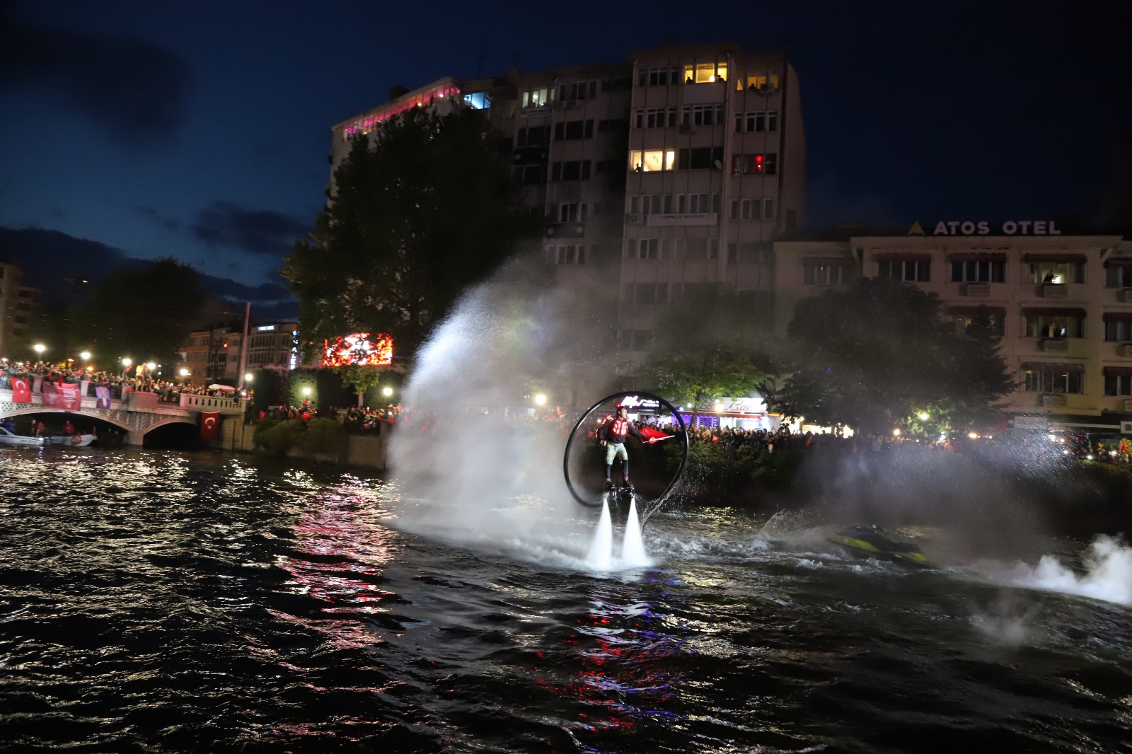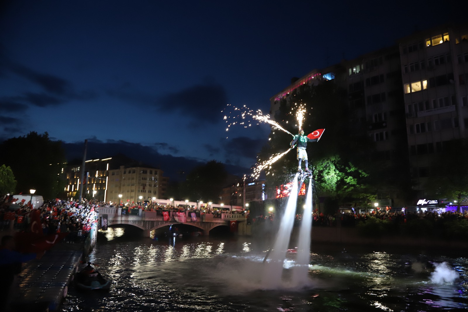 Etkinlikler kapsamında Porsuk Çayı’nda flyboard, ışık gösterileri, marşlar eşliğinde düzenlenen Fener Alayı’na, Eskişehirliler büyük ilgi gösterdi. Porsuk Çayı üzerindeki köprülerde ve kıyılarda yerini alan binlerce Eskişehirliye, Büyükşehir Belediyesi görevlileri tarafından Türk bayrakları dağıtıldı.