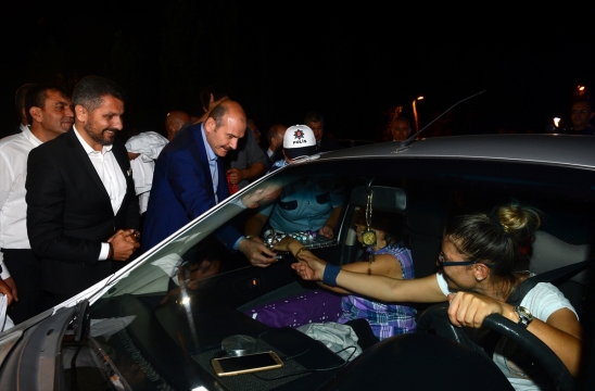 Eskişehir'in Sivrihisar ilçesine gelen İçişleri Bakanı Süleyman Soylu, "Bu bayram ben de trafik polisiyim, hatalı sürücüye kırmızı düdük" projesi kapsamında yol uygulamasına katıldı.