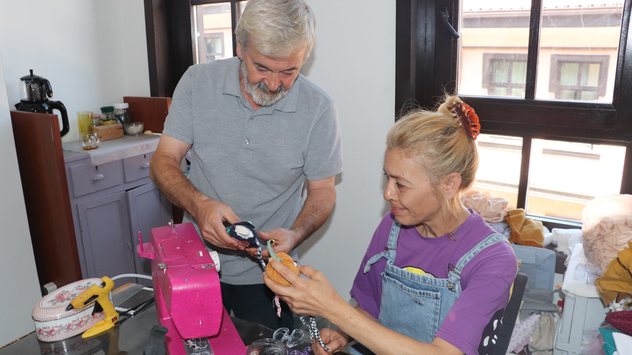 Eskişehir'de çocukları için başladıkları bez bebek yapımını bir tutkuya dönüştüren Zafer ve Arzu Özer çifti, aile saadetlerini sanatla harmanlayarak hem doğal oyuncaklar hem de eşsiz sanat eserleri üretiyor.
