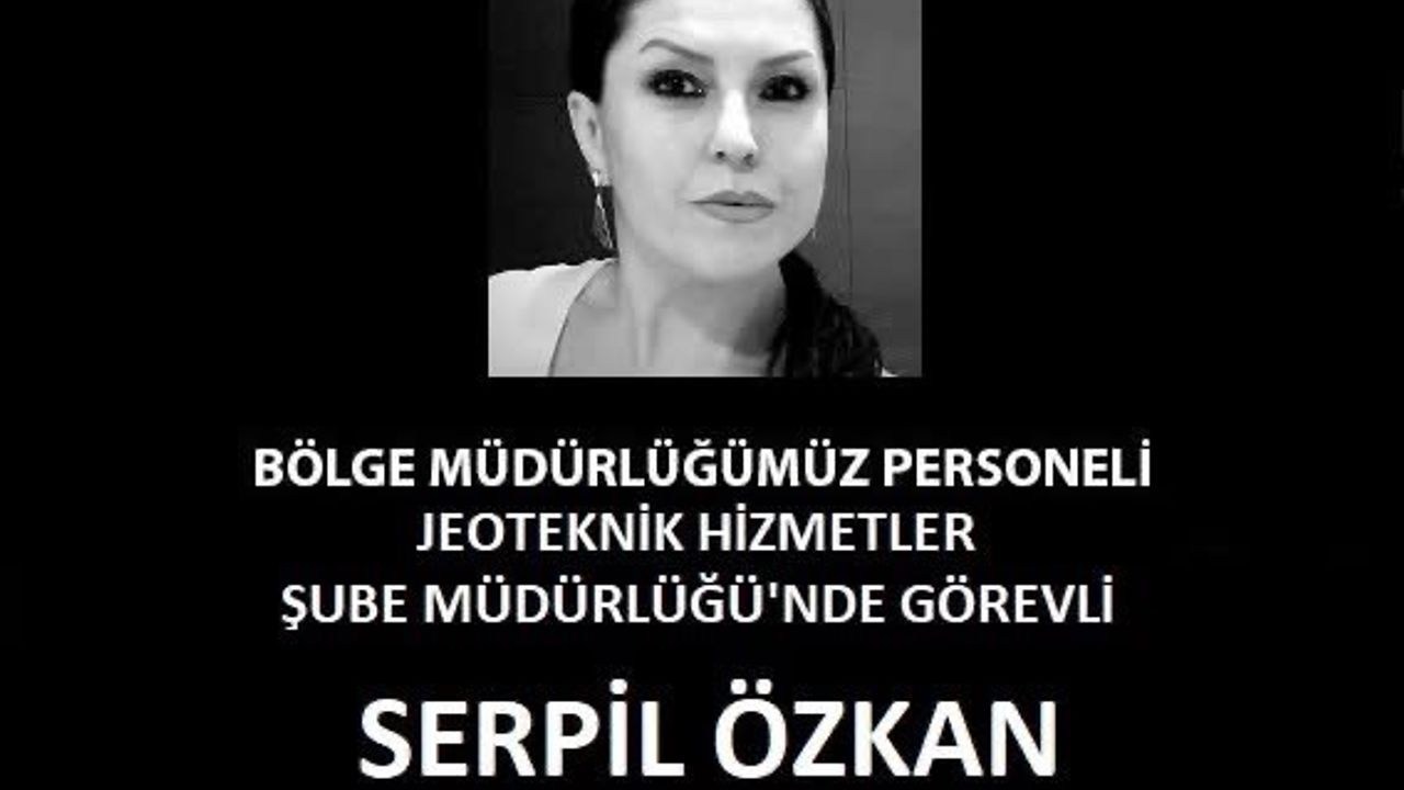 Kurumun sosyal medya hesabından yapılan paylaşımda, "Acı kaybımız. Bölge müdürlüğümüz personeli Jeoteknik Hizmetler Şube Müdürlüğü'nde görevli Serpil Özkan hakkın rahmetine kavuşmuştur. Merhumeye Allah’tan rahmet, kederli ailesine ve tüm DSİ camiasına başsağlığı dileriz" ifadelerine yer verildi.