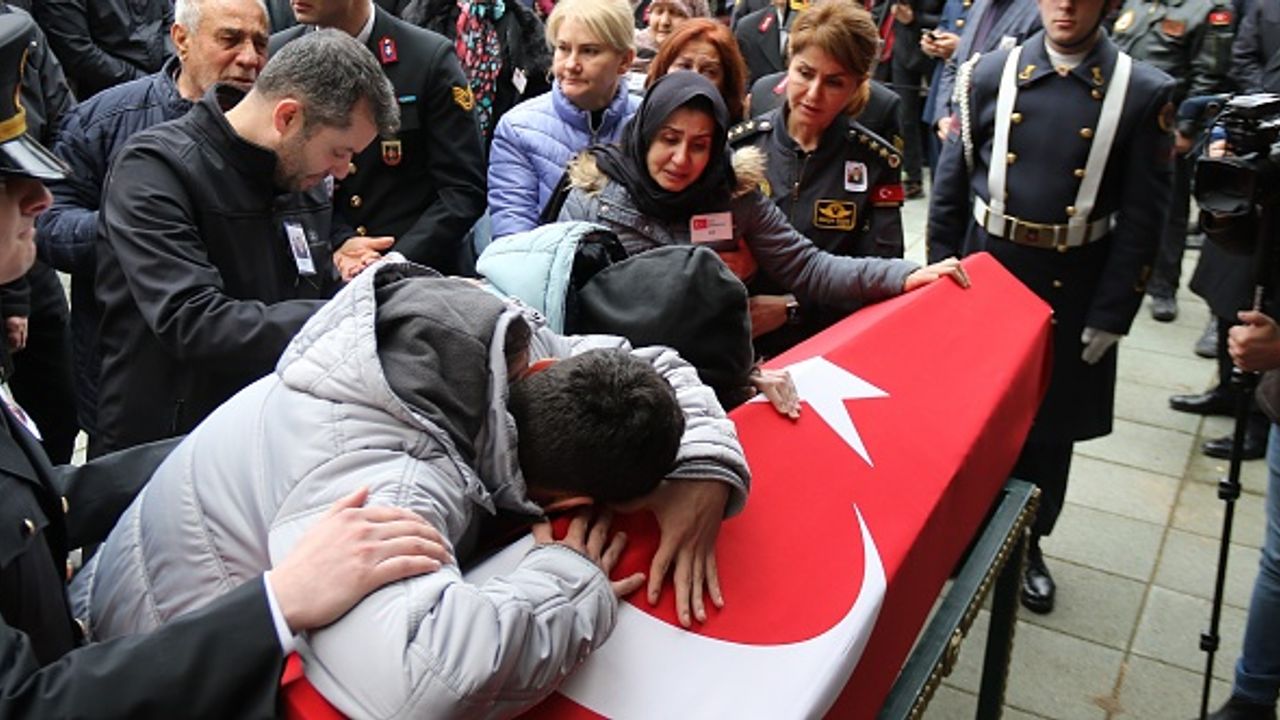 Albay Oğuzhan Adalıoğlu’nun eşi Sevim Adalıoğlu, şehit eşinin Türk bayrağına sarılı tabutu başında gözyaşlarını tutamadı. Eşini top arabası üzerinde son yolculuğuna uğurlayan Sevim Adalıoğlu, "Ben onu çok seviyorum. Bana olan oldu. Ben onsuz ne yapayım? Ah Oğuz yaktın beni. Ben sensiz ne yapayım aşkı. Ah ben seni ne çok severdim. Senin yerine ben öleyim. Benim kocam burada yatıyor. Ne olursun kalksın" dedi.