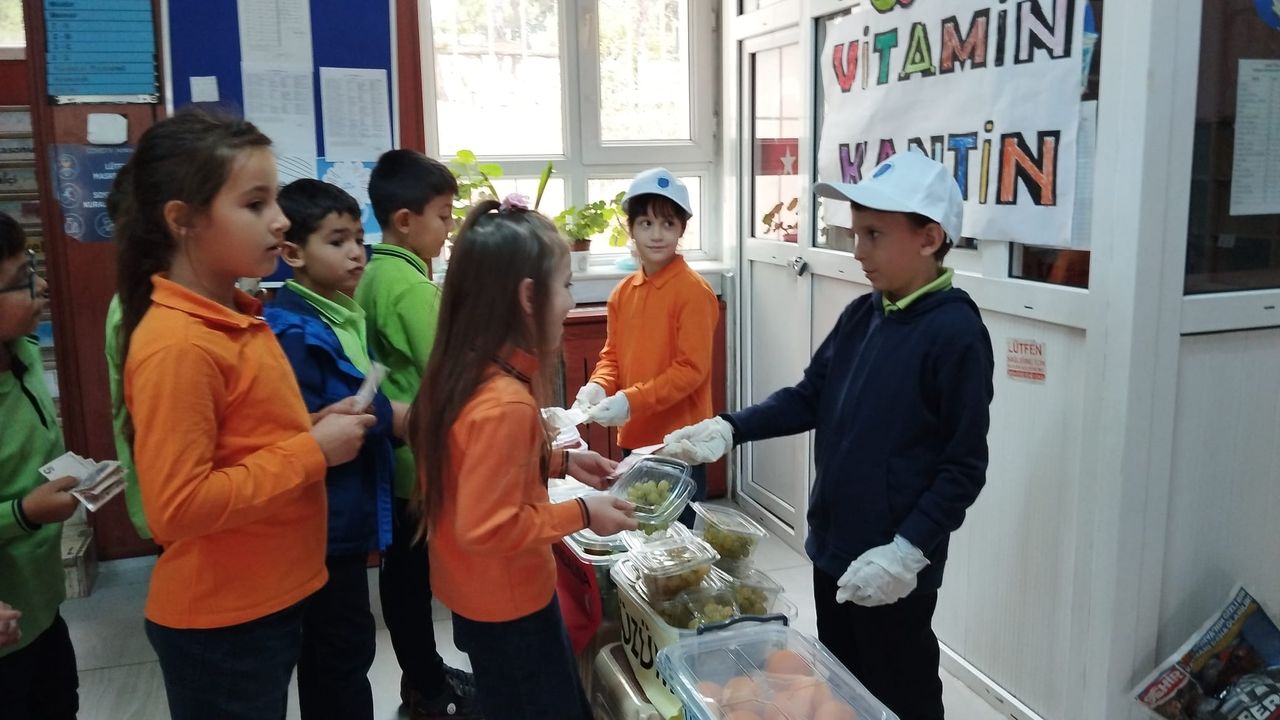 Kantini bulunmayan okulda, sınıf öğretmeni Volkan Kaplaner öncülüğünde yürütülen bu uygulama sayesinde öğrenciler, mevsim meyvelerine oldukça uygun fiyatlarla ulaşabiliyor.