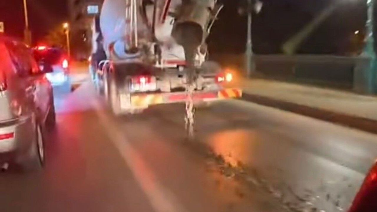 Eskişehir'de yola beton dökerek seyreden bir mikser aracı kameraya yansıdı.